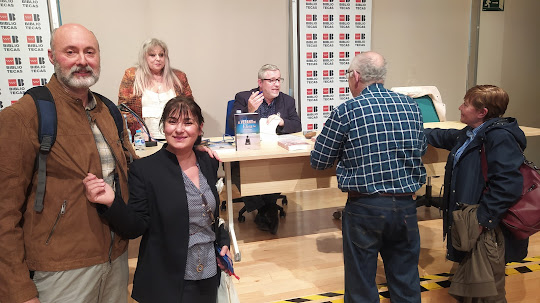 Gracias a la biblioteca pública María Moliner en Villaverde Alto; a AMIFIVI, a María Felisa Martínez, su presidenta y a mi amigo Ángel Algaba Mesa, por la buena organización y por conseguir que nos sintiéramos arropados y muy a gusto.Gracias a Violeta Flores Ruiz porque fue un gran honor que la autora de «Violeta es algo más que un color», esa autobiografía lúcida e imprescindible, estuviera a mi lado y además dedicándome unas palabras preciosas.
